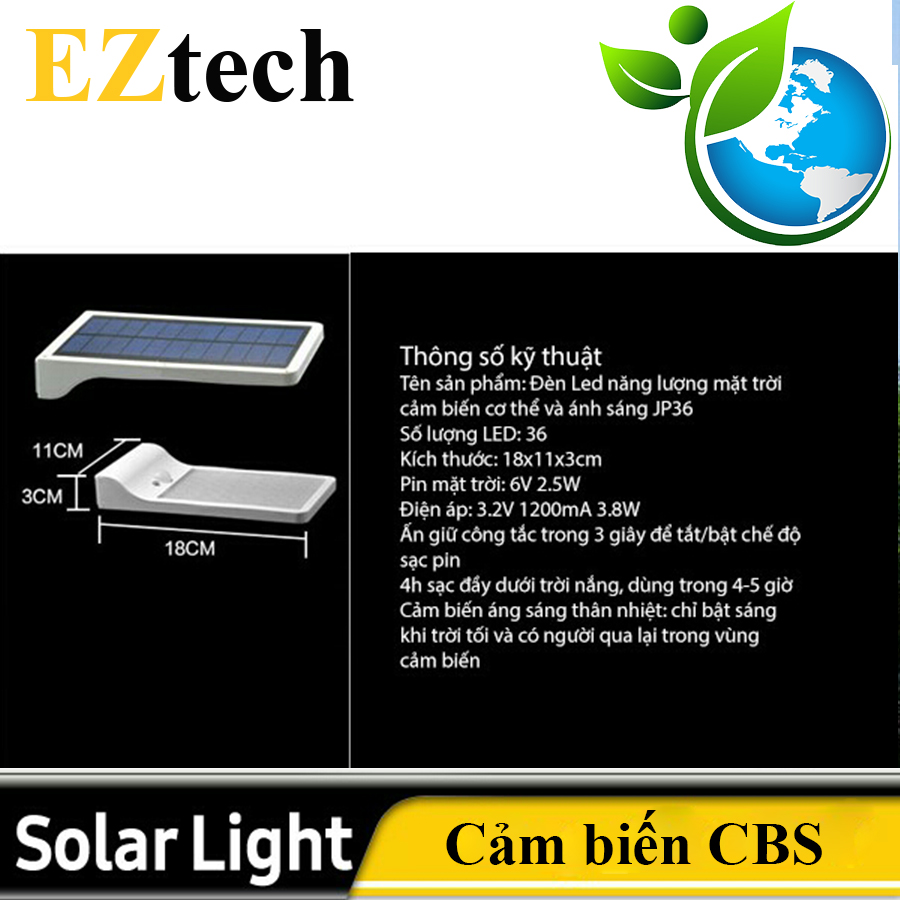 Đèn Led EZ36 cao cấp thông minh sử dụng năng lượng mặt trời đáp ứng mọi yêu cầu của 1 chiếc đèn led chiếu sáng ngoài trời: